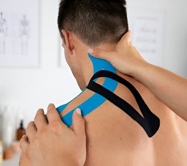 Professional taping to support muscles and joints, reduce pain, and protect during activity.